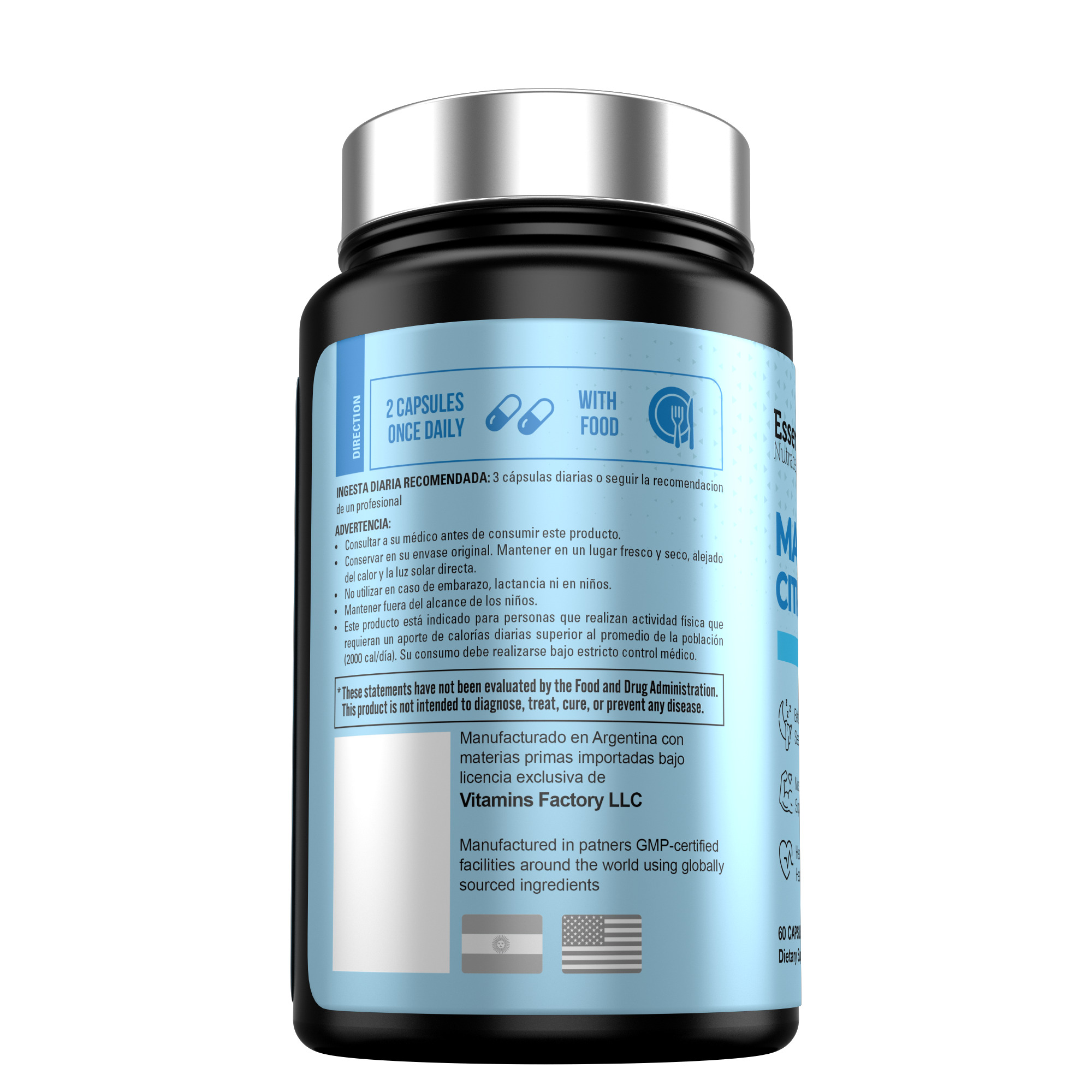Detalles: 60 cápsulas · 1500 mg · Marca: Essential Nutraceuticals Uso: 2 cápsulas al día, preferentemente antes de dormir