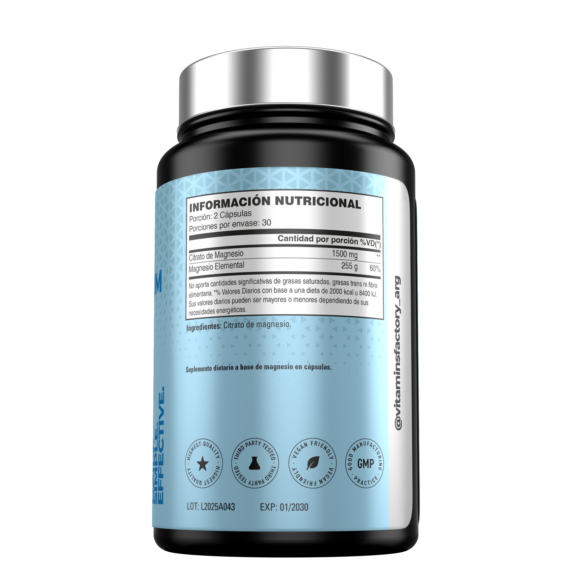 Magnesium Citrate es la forma de magnesio más popular por su excelente biodisponibilidad. Con 1500 mg por porción, es ideal para quienes buscan mejorar el sueño, reducir calambres musculares y cuidar la salud del corazón.